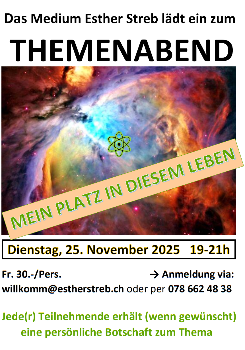 Das Geschenk meiner medialen Wahrnehmung soll Menschen dienen, zu den unterschiedlichsten Anliegen, Themen und zu sich selber einen zusätzlichen wertfreien Blickwinkel zu erhalten.